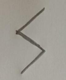 El último símbolo se obtiene de los trazos a partir del centro de la Piedra del Sol hacia los vértices de cada uno de los ocho rayos solares que rodean al Quinto Sol, siendo las 3 líneas transversales al eje, correspondientes con los 3 círculos entre los rayos solares y Tonatiuh. ADD: El trazo está incompleto. Sólo representa uno de los ocho ejes por la dificultad de dibujar con el dedo en el móvil.